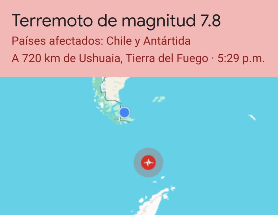 La Municipalidad de Ushuaia, a través de la Secretaría de Gobierno, informa que no se registra ningún tipo de alerta en la ciudad tras el sismo de magnitud 7.8 ocurrido en la tarde de hoy en el pasaje Drake.