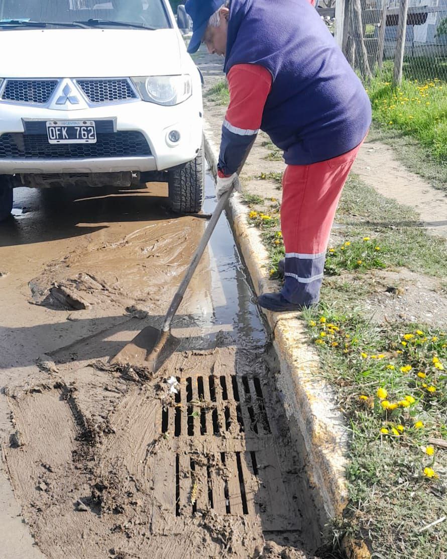 Las tareas incluyen la remoción de barros superficiales, la limpieza de alcantarillado y trabajos en pluviales, en coordinación con la empresa Agrotécnica Fueguina. Además, se procedió al despeje de piedras y sedimentos arrastrados por el temporal que provocó la creciente extraordinaria del arroyo que atraviesa la ciudad.