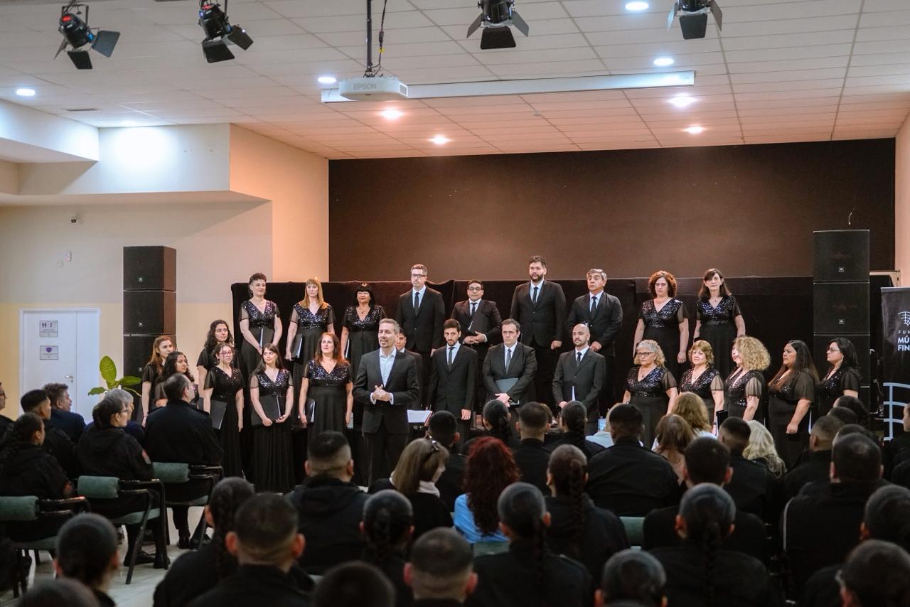 Bajo la dirección del Maestro Pablo Dzodan, el Coro del Fin del Mundo ofreció un repertorio especial preparado para la ocasión, en una función que fue un regalo cultural para todos los asistentes.