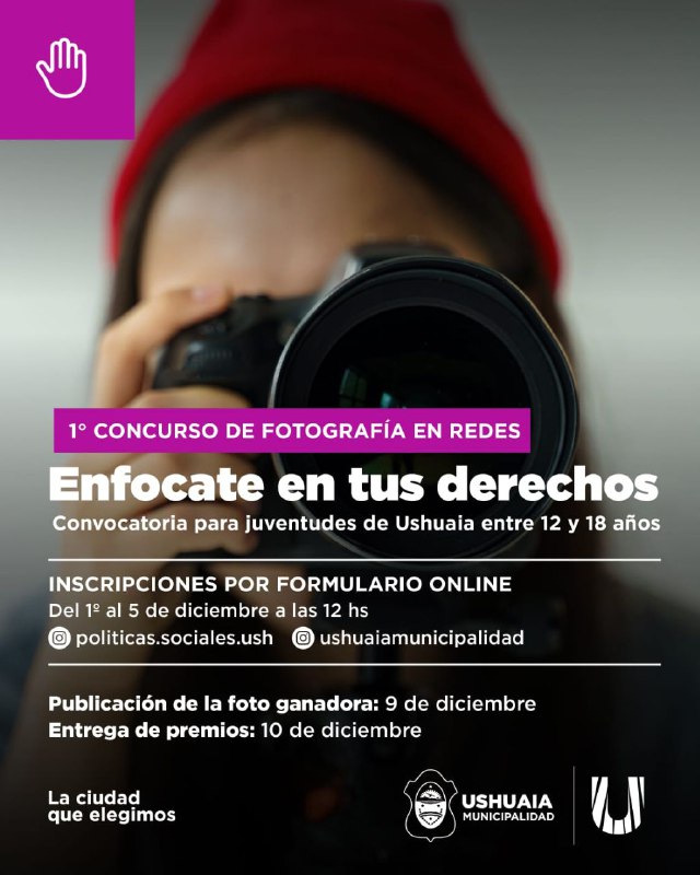 La Municipalidad de Ushuaia, por intermedio de la Secretaría de Políticas Sociales, Sanitarias y Derechos Humanos, invita a las juventudes de la ciudad a participar en la primera edición del Concurso de Fotografía “Enfocate en tus Derechos”, propuesta que busca promover la expresión artística y la reflexión sobre los derechos de niñas, niños y adolescentes.