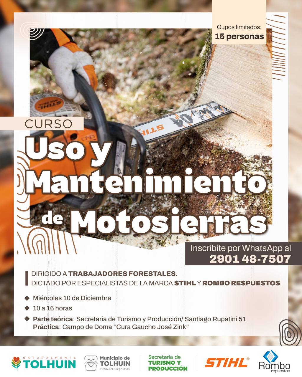 Las personas interesadas pueden inscribirse a través de WhatsApp al 2901 48-7507. Desde la organización recuerdan que los cupos son limitados (15 personas) y que la propuesta busca impulsar un abordaje más seguro y profesional del trabajo en el monte.