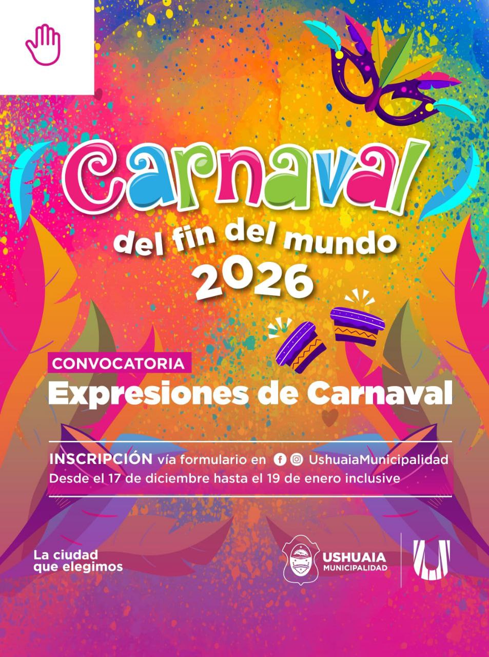 La Secretaría de Cultura y Educación de la Municipalidad de Ushuaia lanzó la convocatoria al “Carnaval del Fin del Mundo 2026”, invitando a agrupaciones y expresiones de carnaval que deseen participar del gran festejo popular.