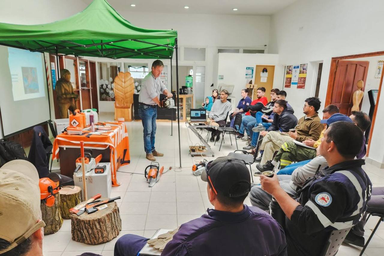 La capacitación fue desarrollada por el equipo de la Secretaría de Turismo y Producción del Municipio de Tolhuin, con el acompañamiento técnico de Rombo Repuestos y especialistas de STIHL Argentina, quienes compartieron conocimientos específicos sobre el uso responsable de la herramienta, su correcto mantenimiento y la prevención de riesgos laborales. Desde el Municipio destacaron la importancia del trabajo articulado con el sector privado para fortalecer la formación técnica local.