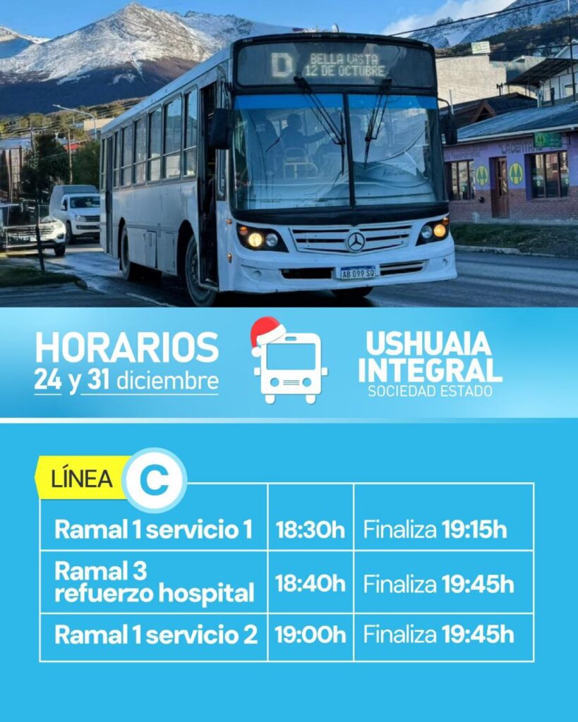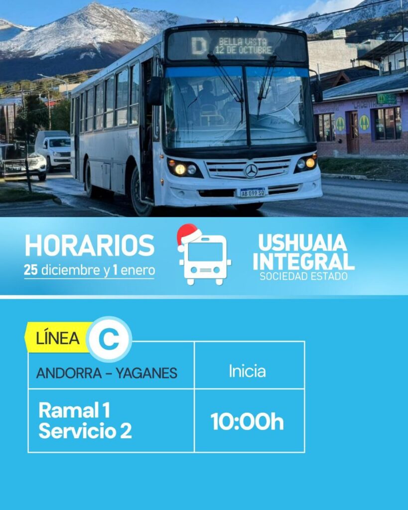 Ushuaia Integral Sociedad del Estado informa a la comunidad que el Transporte Público de Colectivos, tendrá horario reducido durante las Fiestas Navideñas y de Año Nuevo.