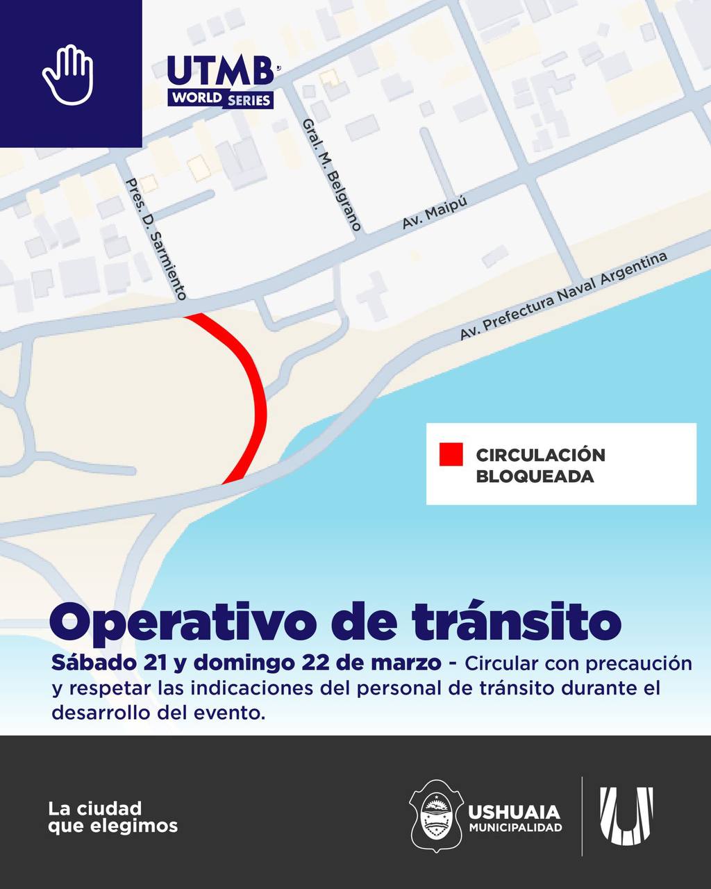 La Municipalidad de Ushuaia informa a la comunidad el esquema de tránsito previsto con motivo de la realización de la competencia internacional Ultra-Trail du Mont-Blanc (UTMB), que tendrá lugar en la ciudad desde el miércoles 17 al domingo 22 de marzo.