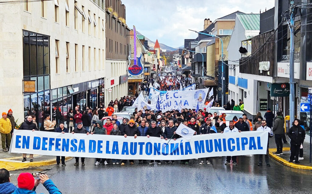 La capital de Tierra del Fuego fue escenario de una masiva movilización encabezada por trabajadores de diversos gremios municipales, quienes reclamaron la regularización en el envío de fondos coparticipables y la defensa de la autonomía financiera de la ciudad. La jornada comenzó en el Paseo de las Rosas, desde donde más de mil manifestantes marcharon hacia la Legislatura provincial para exigir el tratamiento urgente de un mecanismo de transferencia automática, diaria y previsible, conocido técnicamente como ley de goteo.
