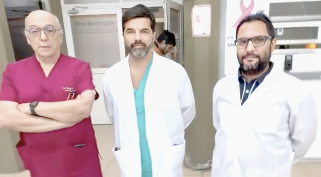 Los doctores Ariel Ponessa, Rodrigo Santibáñez y Hugo Riello protagonizaron una intervención inédita en la región. Ante la falta de instrumental convencional para el tamaño del paciente, adaptaron equipo de urología para realizar una endoscopía digestiva de alta complejidad.